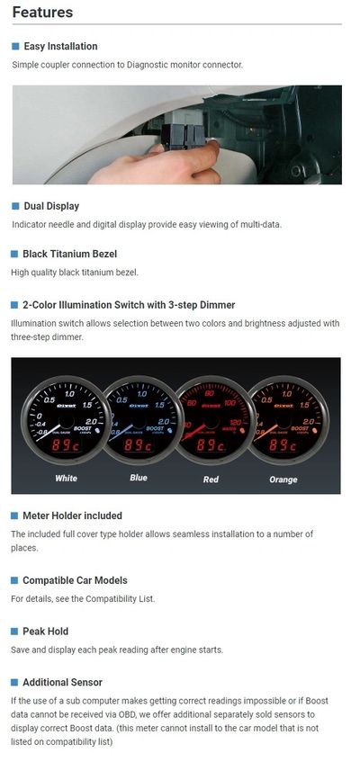 If the use of a sub computer makes getting correct readings impossible or if boost data cannot be received via OBD, we offer additional separately sold sensors to display correct Boost data